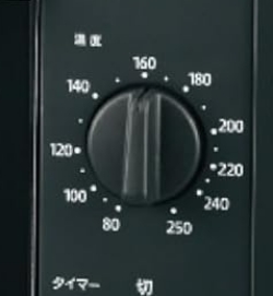 | ③温度調整 | 温度指定(80℃〜250℃)で連続調節可能 | 火力(ワット)5段切替 + 上火グリル |